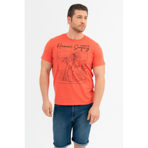 Budmil Férfi Modern Fit Póló 20300439-003. Színe: narancs melír modern fit férfi pólónyomott mintával díszített 20300439-003