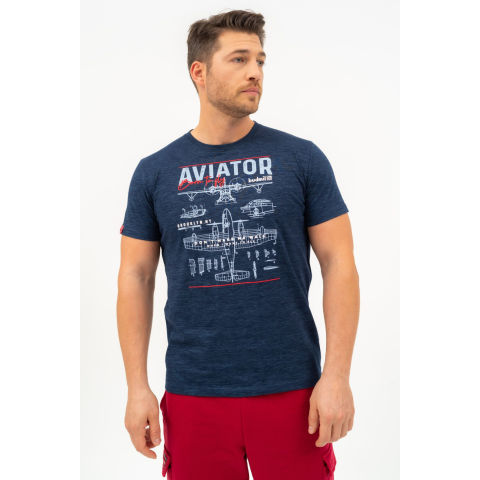 Budmil Férfi Modern Fit Póló 20310109-003. Színe: s.kék-melír modern fit férfi póló nyomott mintával díszített 20310109-003