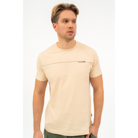Budmil Férfi Regular Fit Póló 20300446-004. Színe: bézs regular fit férfi póló nyomott mintával díszített 20300446-004