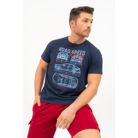Budmil Férfi Regular Fit Póló 20300446-012. Színe: s.kék regular fit férfi póló nyomott mintával díszített 20300446-012