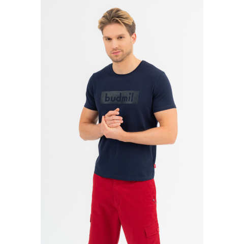 Budmil Férfi Szűkített Fazonú Póló 20300435-002. Színe: s.kék slim fit férfi pólónyomott mintával díszített 20300435-002