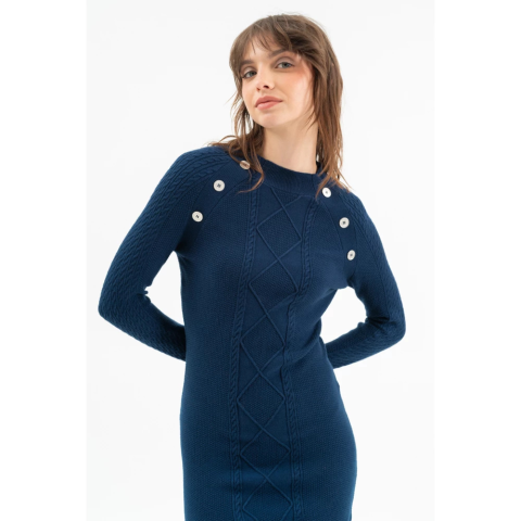 női vékony kötött ruhaszűk fazonfémgombokkal díszítve