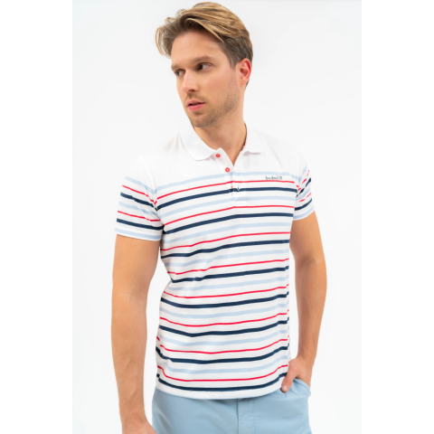 1 kép BUDMIL Modern fit galléros póló Férfi XL fehér-s.kék 20730267-001251-0599