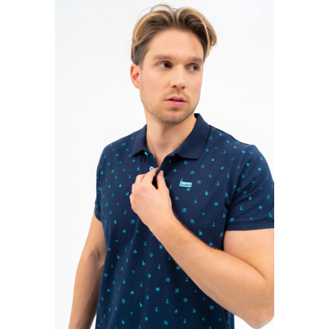 modern fit férfi galléros póló nyomott mintával díszített