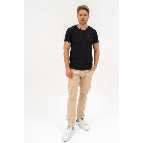 modern fit férfi póló rugalmas piké anyagbólnyomott mintával és szövött címkével díszített