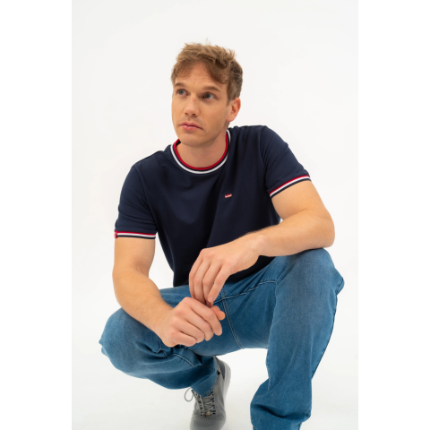 modern fit férfi póló rugalmas piké anyagbólnyomott mintával és szövött címkével díszített