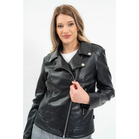 női műbőr dzseki karcsúsított fazonfém címkével díszítve