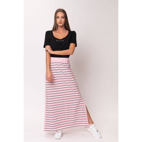 Budmil Női Budmil Nyári Szoknya 20610024-001. Színe: rózsaszín-fehérnői csíkos hosszú szoknyagumizott derékrésszeloldalán sliccelején kis nyomott mintával 20610024-001