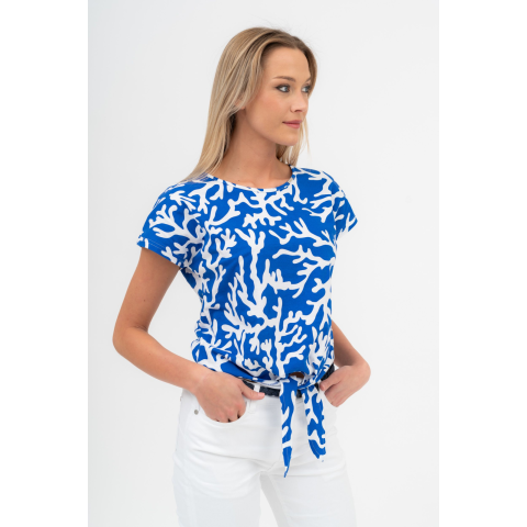 Budmil Női Derékkötős Póló 20331144-002. Színe: kék-fehér női pólólezser, derékban megköthető fazonfémcímkével díszített 20331144-002