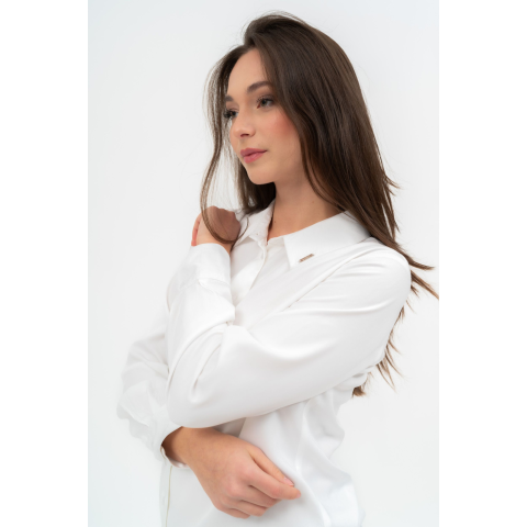 Budmil Női Karcsúsított Blúz 20770070-001. Színe: fehér hosszú ujjú női blúz karcsúsított fazon fémcímkével díszítve 20770070-001