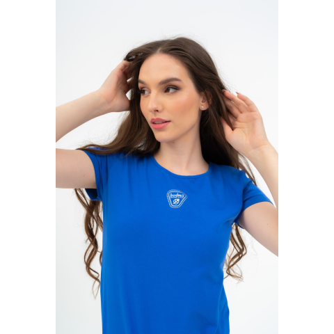 Budmil Női Karcsúsított Póló 20500189-004. Színe: kék női póló karcsúsított fazon nyomott mintával díszített 20500189-004