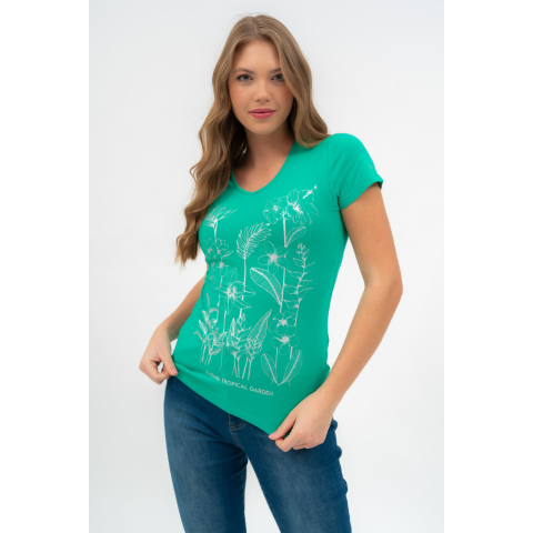 Budmil Női Karcsúsított Póló 20500194-002. Színe: zöld női póló karcsúsított fazon nyomott mintával díszített 20500194-002