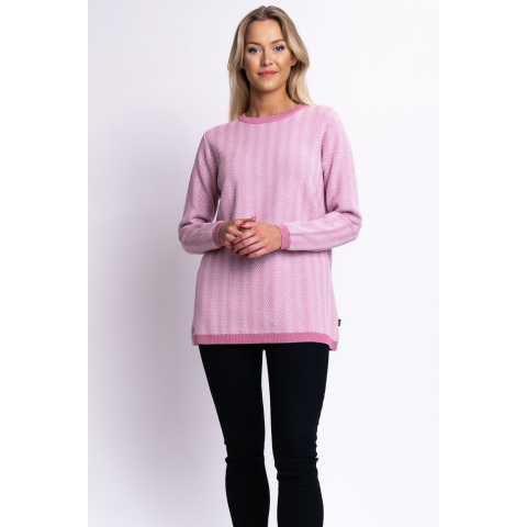 Budmil Női Kötött Pulóver 20050763-001. Színe: rózsaszín-fehérnői vékony kötött, pulóverbelekötött cikcakkos mintávallezser fazonfémcímkékkel díszített 20050763-001