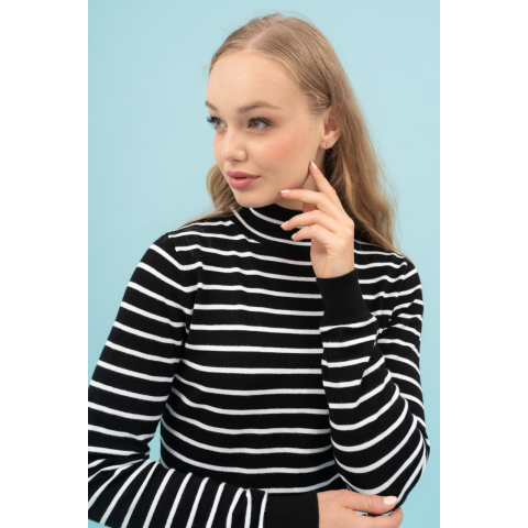 Budmil Női Kötött Pulóver 20050800-002. Színe: fekete-fehér női vékony kötött pulóverszűk fazonfémcímkével díszítve 20050800-002