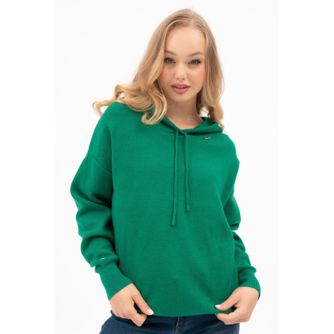 Budmil Női Kötött Pulóver 20050801-002. Színe: s.zöld női vékony kötött kapucnis pulóverlezser fazonfémcímkével díszítve 20050801-002