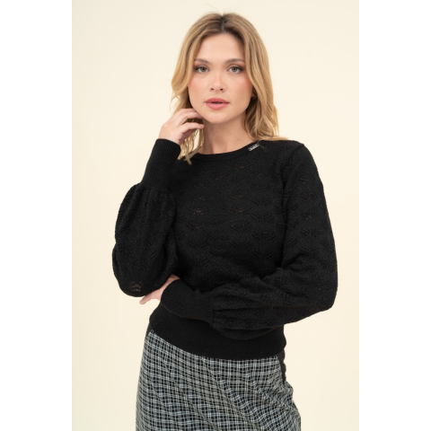 Budmil Női Kötött Pulóver 20050802-002. Színe: fekete női vékony kötött pulóverlezser fazonfémcímkével díszítve 20050802-002
