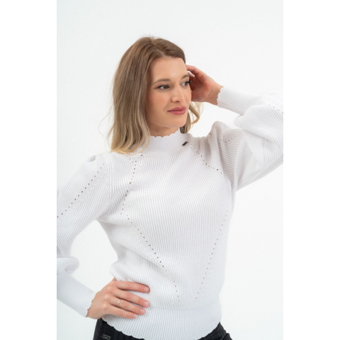 Budmil Női Kötött Pulóver 20050824-001. Színe: fehér női vékony kötött pulóverszűkített fazonfémcímkével díszítve 20050824-001