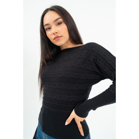 Budmil Női Kötött Pulóver 20050825-002. Színe: fekete női vékony kötött pulóverrövid, bő ujjú fazonfémcímkével díszítve 20050825-002