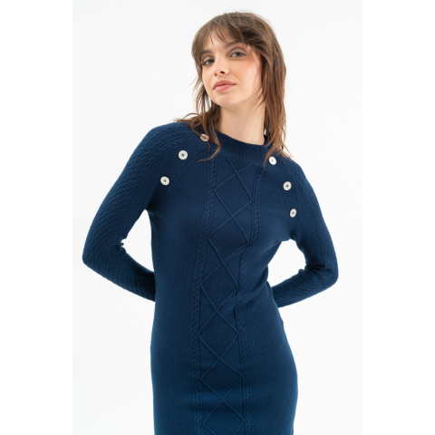Budmil Női Kötött Ruha 20650038-002. Színe: s.kék női vékony kötött ruhaszűk fazonfémgombokkal díszítve 20650038-002