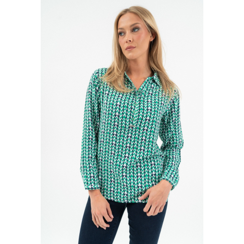 Budmil Női Lezser Fazonú Blúz 20770077-002. Színe: zöld-fehér női blúz lezser fazon fémcímkével díszítve 20770077-002