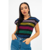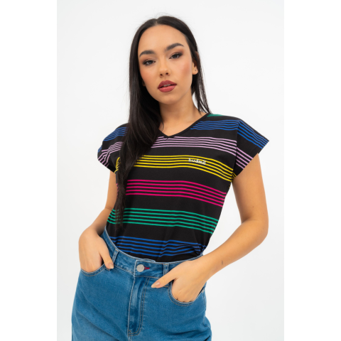 Budmil Női Lezser Fazonú Póló 20331156-002. Színe: fekete-színes női póló lezser fazon hátán keresztezett pántokkalnyomott mintával díszített 20331156-002