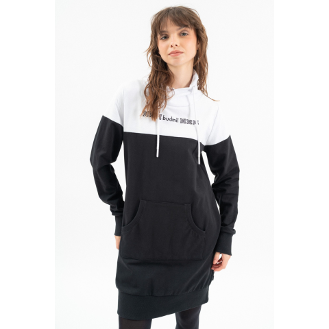Budmil Női Magasnyakú Szabadidőruha 20650040-002. Színe: fekete-fehér női magasnyakú ruha rugalmas anyagbóllezser fazonalapanyaga belül bolyhozatlanhímzéssel díszítve 20650040-002