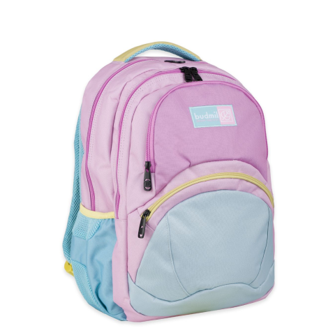 Budmil Női Ovális Hátitáska 10110220-019. Színe: rózsaszín-sárga30x44x18 cm, 24Lalapanyaga vízlepergetőmindkét oldalán kulacstartó zseblégcsatornás hátlapnégy különálló cipzáros rekeszaz első rekesz hőtartó fóliával bélelta második rekeszben rendszerező zsebek 10110220-019
