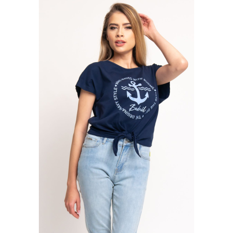 Budmil Női Póló 20331125-002. Színe: s.kéknői pólólezser, derékban megköthető fazonnyomott mintával díszített 20331125-002
