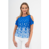 Budmil Női Póló 20331145-001. Színe: kék-fehér női póló kivágott vállrésszellezser fazonalja gumírozottfémcímkével díszített 20331145-001
