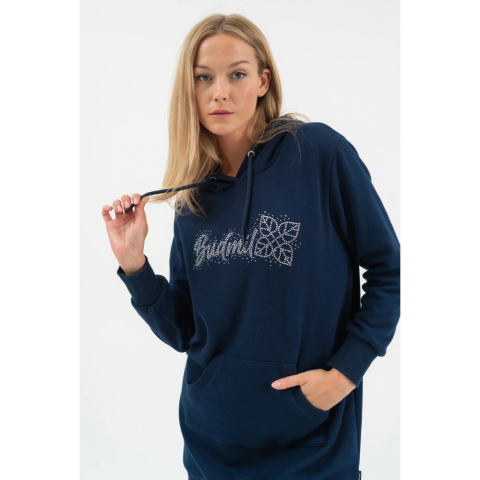 női kapucnis ruhaalapanyaga belül plüsslezser fazonstrasszokkal díszítve