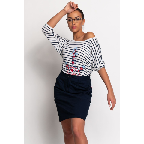 Budmil Női Szoknya 20610029-001. Színe: s.kék-fehérnői rövid szoknya szövött anyagbólfém- és műbőr címkével díszített 20610029-001