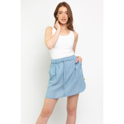 Budmil Női Szoknya 20610031-001. Színe: kéknői rövid szoknya szövött anyagbólgumis derékrész megkötővelhímzéssel díszített 20610031-001