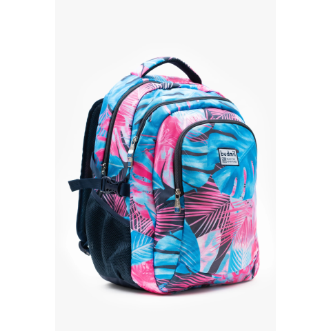 1 kép BUDMIL Ovális hátitáska kék - rózsaszín mintás v3