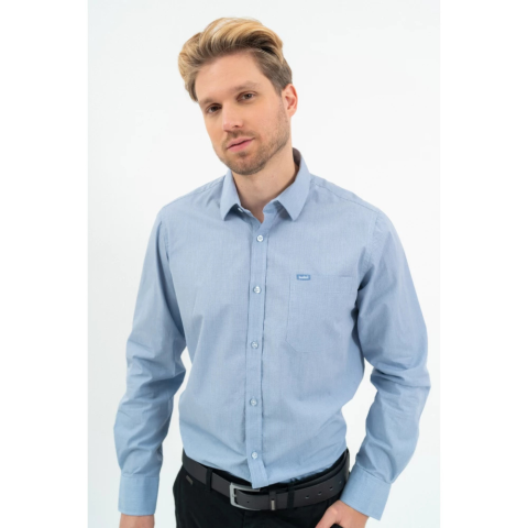 regular fit hosszú ujjú férfi ing egyenes szabású fazonszövött címkével díszítve