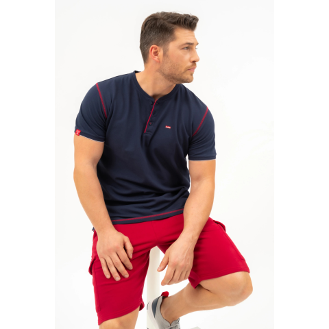 regular fit férfi póló rugalmas piké anyagbólnyomott mintával és szövött címkével díszített
