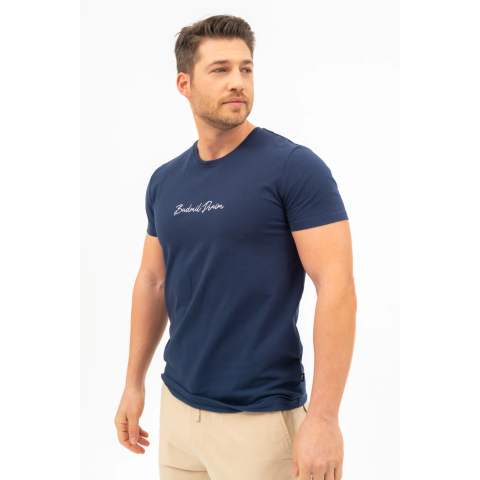 slim fit férfi póló rugalmas anyagbólhímzett mintával díszített