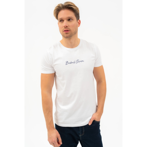 slim fit férfi póló rugalmas anyagbólhímzett mintával díszített