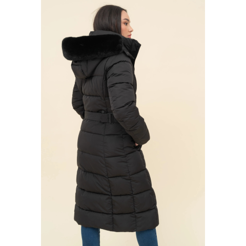 női vastag kabátkapucni lecipzározhatókapucniról a szőrme leszedhetőkapucni magassága szabályozhatóderekán állítható pántokbelső zsebujja alján szélfogóhímzéssel és fémcímkével díszítve