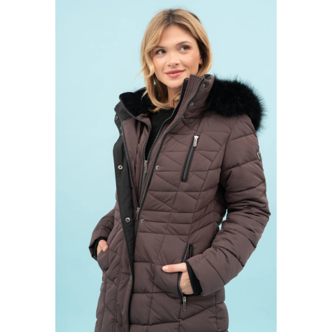 női vastag kabátdupla elejerészkapucni lecipzározhatókapucniról a szőrme leszedhetőkapucni magassága szabályozhatóujja alján szélfogóhímzéssel és fémcímkével díszítve