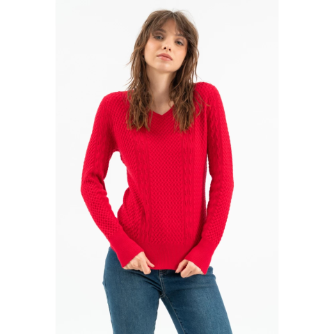 1 kép BUDMIL V-nyakú kötött pulóver Női M piros 20050819-005252-0399