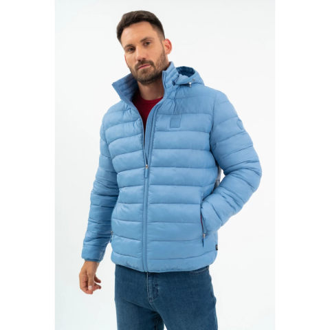 férfi steppelt vékony dzseki kapucni lecipzározhatóbelső zsebekgumicímkékkel díszítve