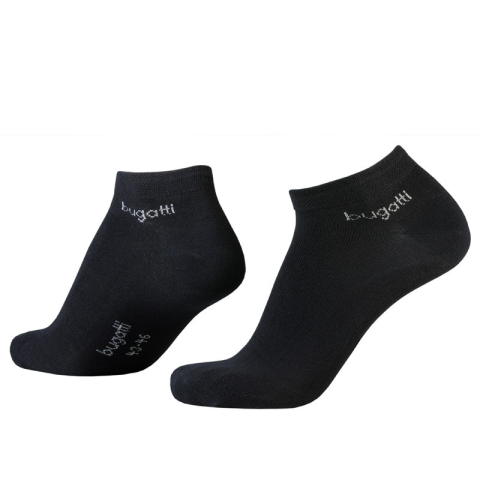 Bugatti 6765 610 férfi sneaker zokni Minőségi 2 páras Bugatti Basic férfi sneaker zokni. Márka: Bugatti Szín: fekete Termékcikkszám: 6765 610 Összetétel: 78% pamut, 20% polyamid, 2% elasztán A 39-es méret 39-42-ig, a 43-as méret 43-46-ig m