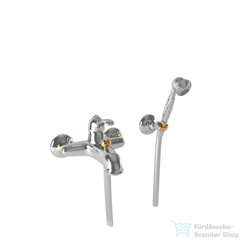 1 kép Bugnatese LEM kádtöltő csaptelep kristályos karral,zuhanyszettel,króm/arany 1902KCRDO