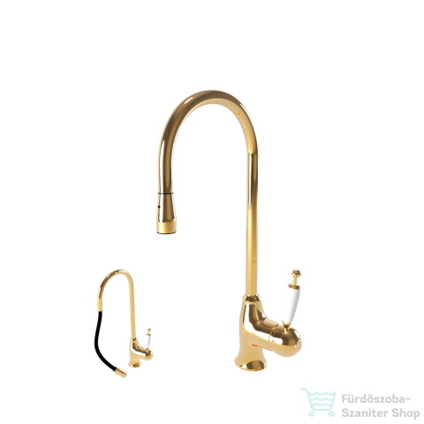Bugnatese OXFORD kihúzható zuhanyfejes mosogató csaptelep,arany 6395DO