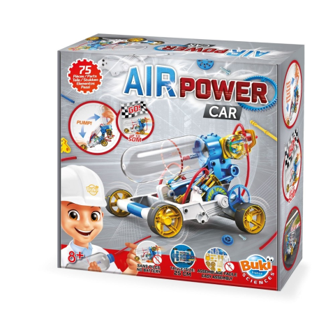 Illeszd össze az alkatrészeket és építs egy sűrített levegővel működtetett járművet! Használd a szivattyút a sűrített levegő-mérő feltöltéséhez. Ha a jelző zöld színű, a jármű készen áll az indulásra! Az összeszerelést színesen illusztrált útmutató segíti