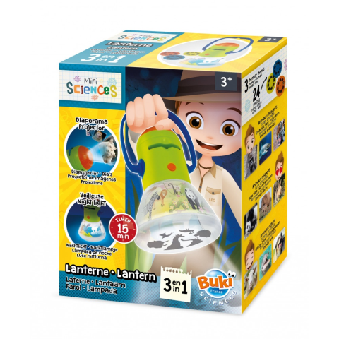 3 az 1-ben lámpa az állatok felfedezéséhez. 3 üzemmód: projektor, éjszakai fény és zseblámpa.LED világítással és 15 perces időzítővel.Tartalma:lámpahárom lemez nyolc diávalSzínesen illusztrált útmutatószórakoztató tevékenységek füzetA játék működéséhez sz