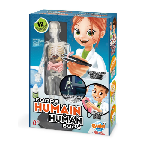 Az emberi test modellje, lágy szervekkel és foszforeszkáló csontokkal. Fedezd fel 12 kísérlettel az anatómia titkait: ismerd meg az emberi testet, a szerveket . Tenyéssz baktériumokat, hallgasd meg a szívverést a sztetoszkóp segítségével. A doboz mérete: