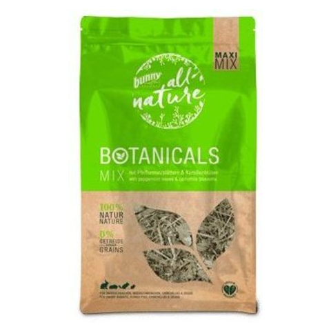 A bunny all nature Botanicals Mix With Peppermint Leaves & Camomile Blossoms egy borsmenta, kamilla és lándzsás útifű keverék. Kiegészítő táplálék törpenyulak, tengerimalacok, csincsillák és deguk részére. A keverék megfelel a növényevő állatok természetes étrendjének, és ideális esetben kiegészíti a napi menüt. Természetes összetételű, friss és ízletes.