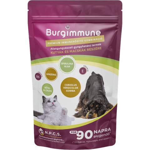 A Burgimmune Prémium Immunerősítő Kombináció egy speciálisan összeállított étrend-kiegészítő granulátum, amely támogatja az immunrendszer működését, fokozza a vitalitást, daganatellenes és gyulladáscsökkentő hatással rendelkezik, segíti a bőr és szőr egészségének megőrzését, valamint hozzájárul az étvágy növeléséhez és a hányinger csillapításához. Emellett elősegíti a regenerációt és hatékonyan támogatja a betegségek megelőzését.A