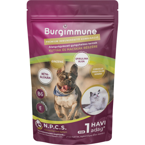 A Burgimmune Prémium Immunerősítő Kombináció egy speciálisan összeállított étrend-kiegészítő granulátum, amely támogatja az immunrendszer működését, fokozza a vitalitást, daganatellenes és gyulladáscsökkentő hatással rendelkezik, segíti a bőr és szőr egészségének megőrzését, valamint hozzájárul az étvágy növeléséhez és a hányinger csillapításához. Emellett elősegíti a regenerációt és hatékonyan támogatja a betegségek megelőzését.A